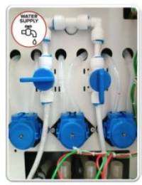 - The machine will start the process of filling the system. Water will start flowing through mixer #1 and the hose into the dispensing window. Wait until the process is complete. Repeat pumping until the water flow is stable and the air bubbles disappear.