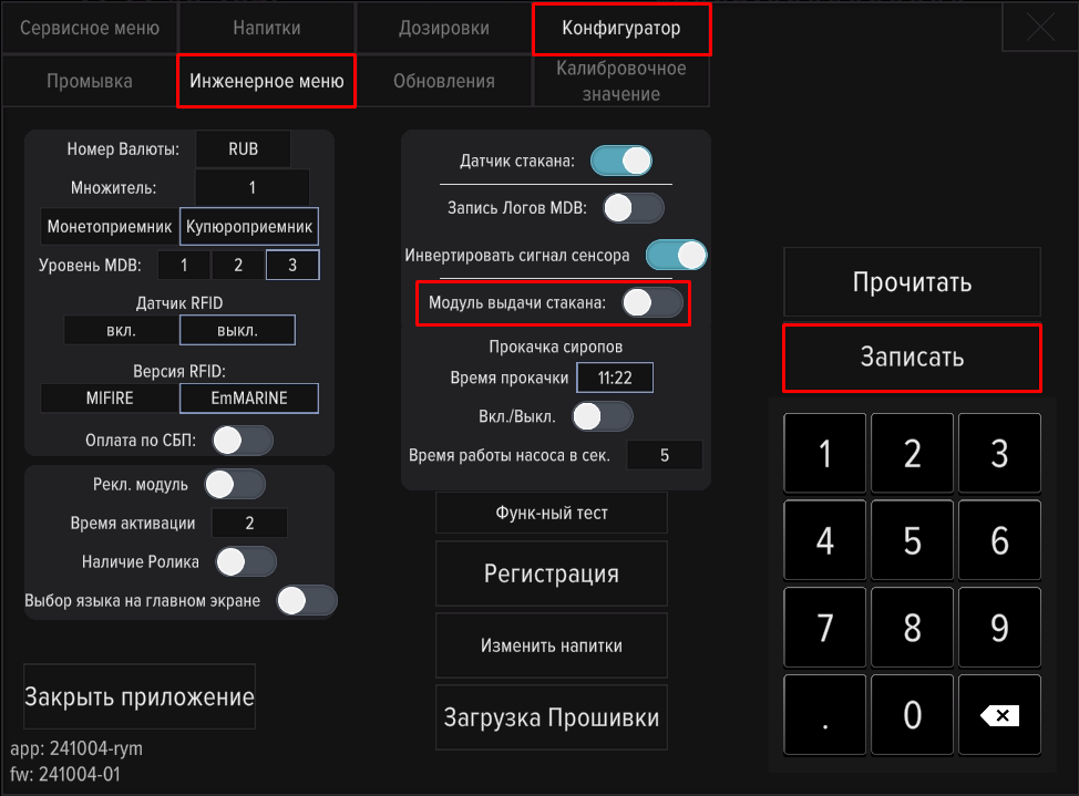 To activate the module programmatically, enable and save the "Cup dispencer module" option.