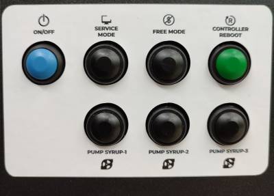 - Drinks must be set up before the sales start. Open the door of the vending machine, press and hold the PUMP SYRUP button of the pump to which the hose is connected. Pump the hose until the concentrate starts dripping from the hoses of the beverage dispenser window.