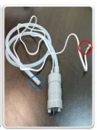 - Start pumping and check the water level in the mixer funnel (see the picture below). The optimal level is indicated by a green stripe, red - excessive or insufficient level: