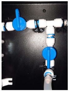 • The machine will begin filling the system. Once the system is filled, water will begin flowing through mixer #1 and the hose into the drain tank. Wait for the process to complete.