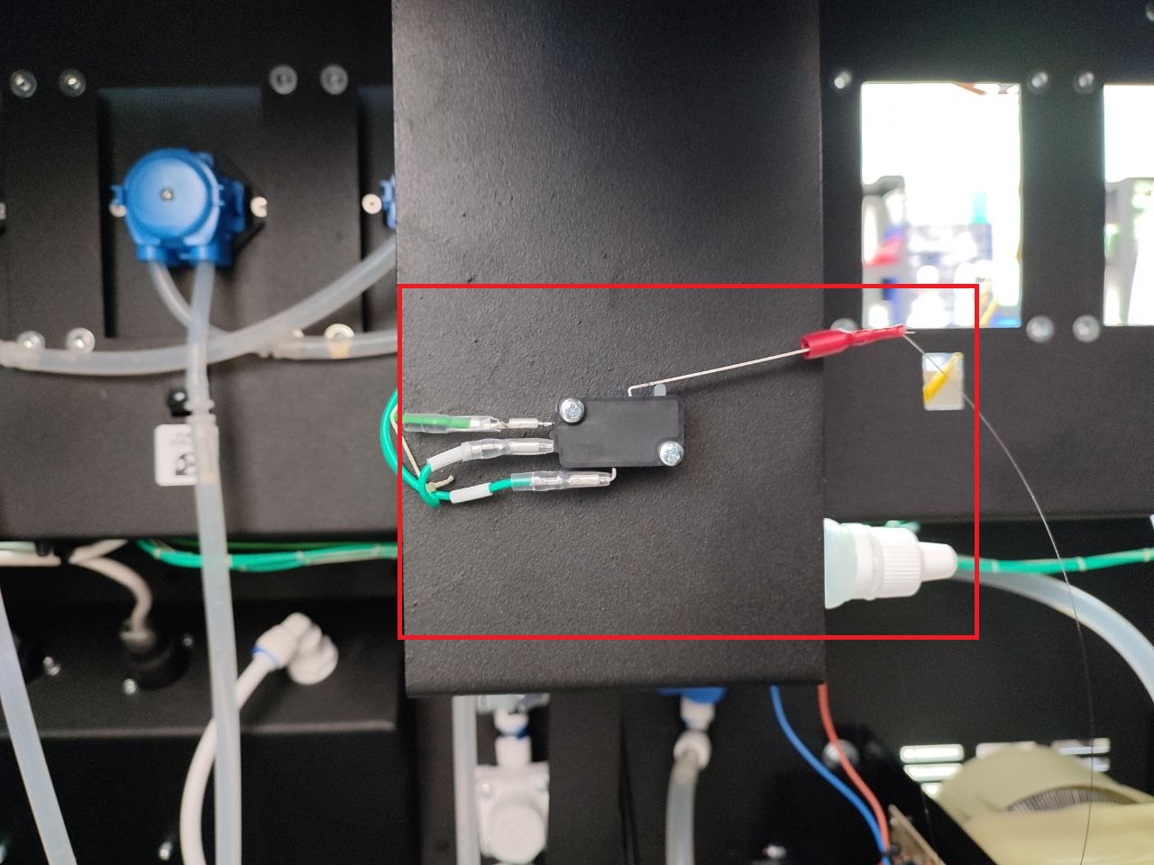 • If the water level is too low or too high, the pump voltage needs to be adjusted. A small “-” screwdriver is required for this adjustment. The adjustment is made by turning the adjustment screw on the UPS board (on the backside of machine):